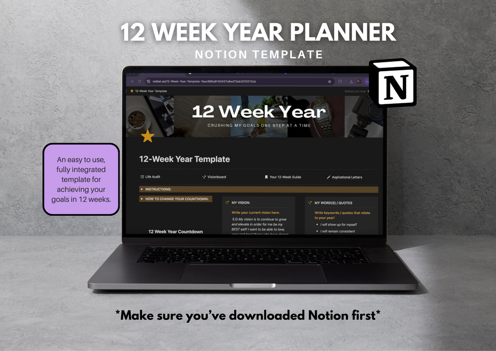Ready to crush your goals? The 12 Week Year template helps you break down your big dreams into actionable steps within just 12 weeks. Focus on what truly matters and stay on track with a structured system that keeps you motivated and productive.